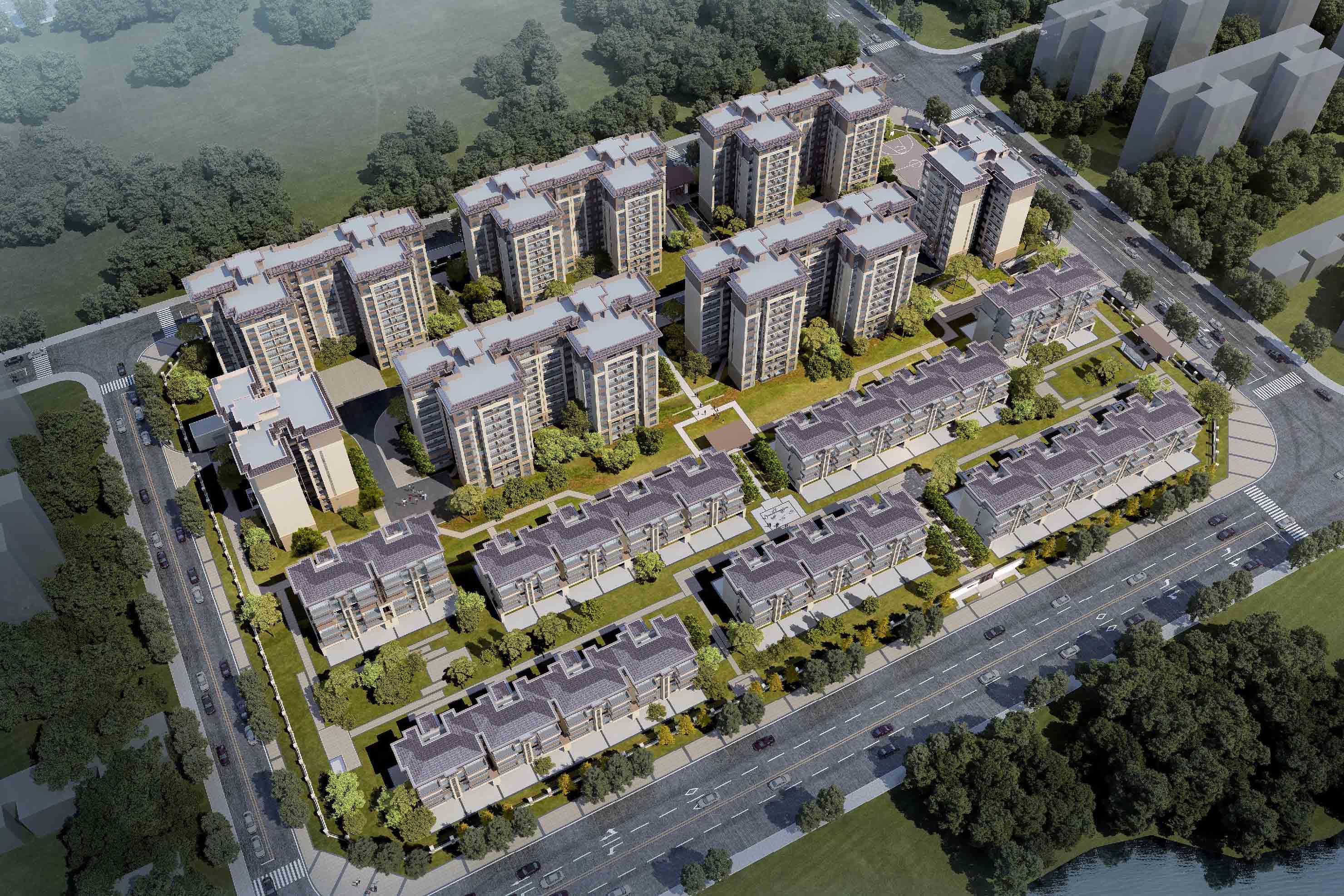 美的·金輝郡是金輝集團美的置業(yè)的合作開發(fā)項目,位于眉山市天府新區(qū)仁壽縣仁壽大道旁,項目占地約63畝,容積率僅1.50,綠地率高達40%。項目總建筑面積約9萬方,規(guī)劃有高品質的洋房和別墅產(chǎn)品,緊鄰2000畝城市濕地公園,整體的建筑密度僅有25%。建筑樓棟皆為南向排布,南望長平水街水景,多面通透,拉開無遮視野,兩梯四戶設置,出入靜謐,戶型設計動靜、干濕分區(qū),通風良好,明廁、明廚一應俱全,構筑墅區(qū)洋房的質感生活意境。