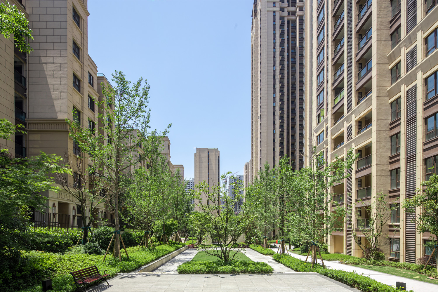 項目總體量約44萬方,容積率2.77,綠化率35%,以“社區(qū)是中央公園的延伸,生活在中央銘著就是生活在中央公園”的理念打造整個項目。
